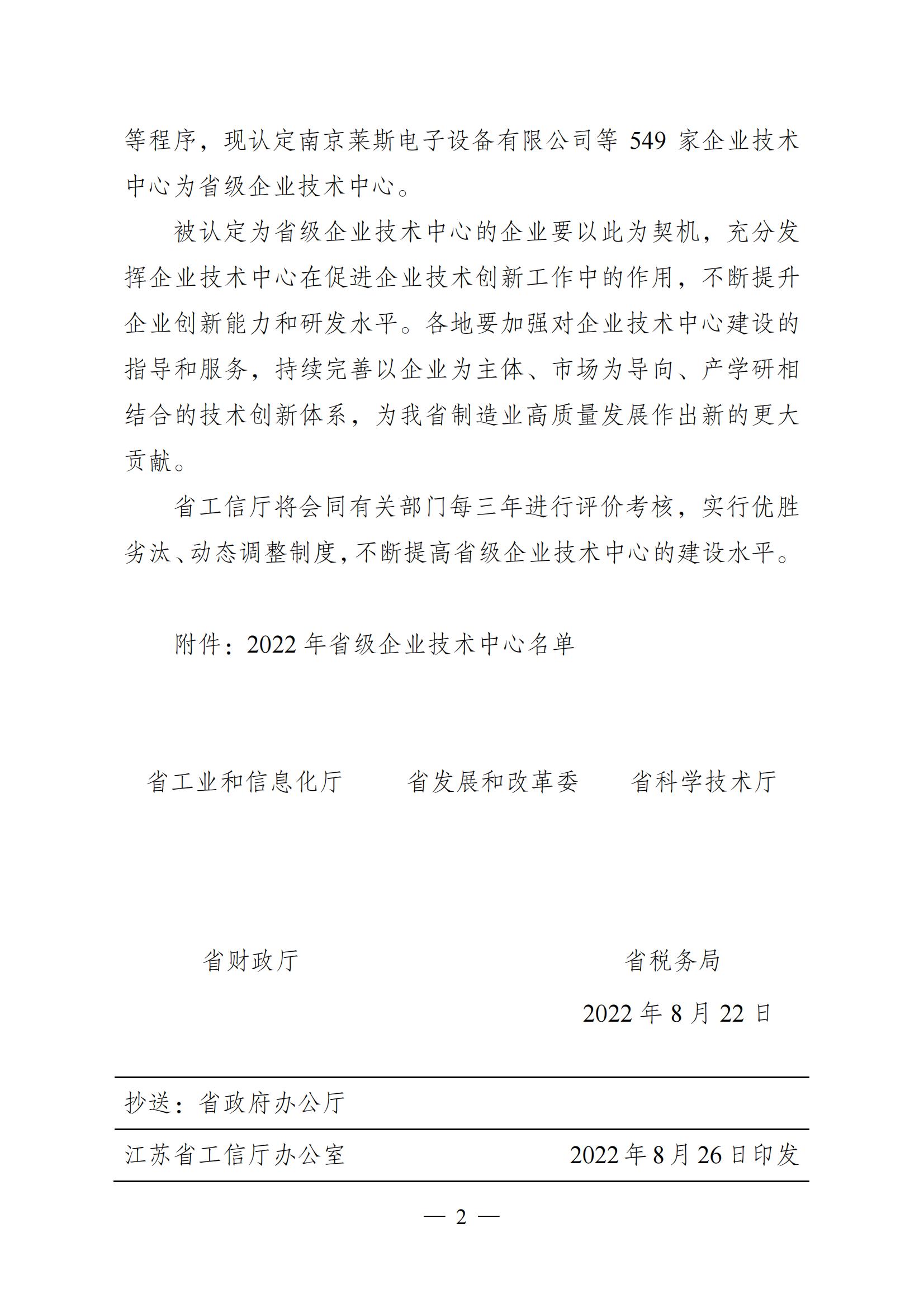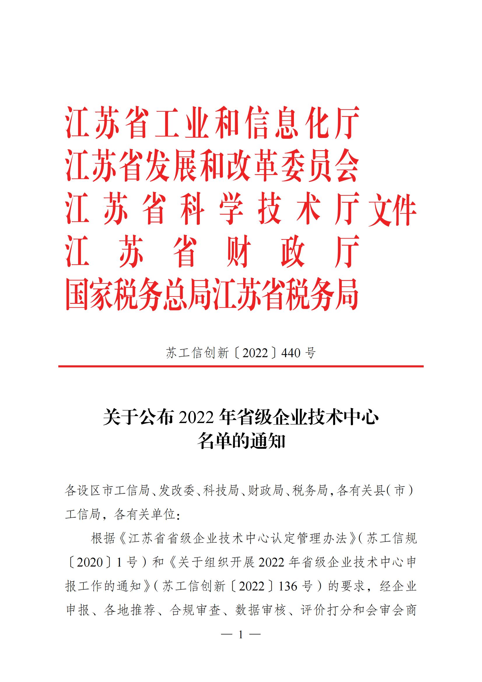 榮獲2022年省級企業(yè)技術(shù)中心